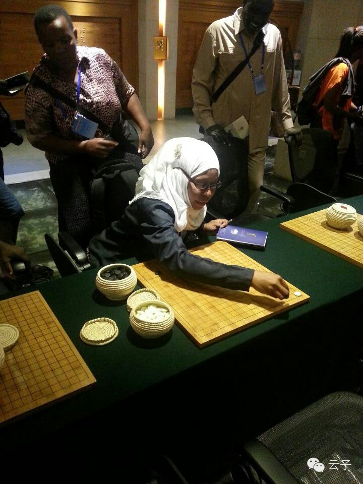 ---刘文富老师,为来宾介绍了云子的历史、传承、制作技艺,并向到访的非洲朋友教授了简单的围棋技艺。