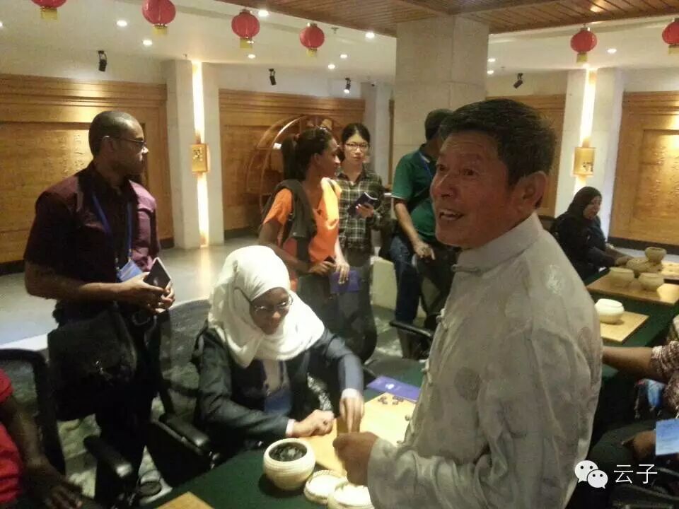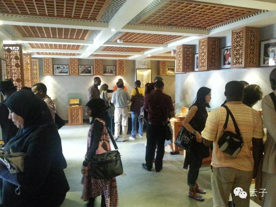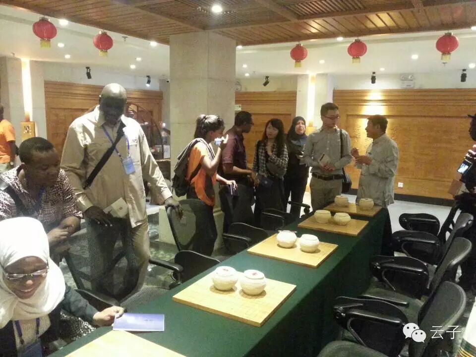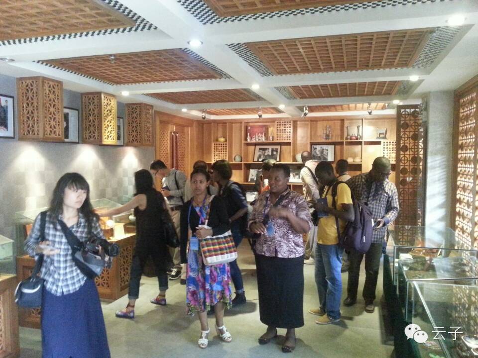 由国务院新闻办和商务部共同主办的“非洲英语国家新闻官员和记者研习班”于2014年7月31日到云南参观访问,第一站就到了昆明官渡古镇,其间参观了乌铜走银传习馆、官渡饵块传习馆和我们“云子传习馆”三个非物质文化传习馆。