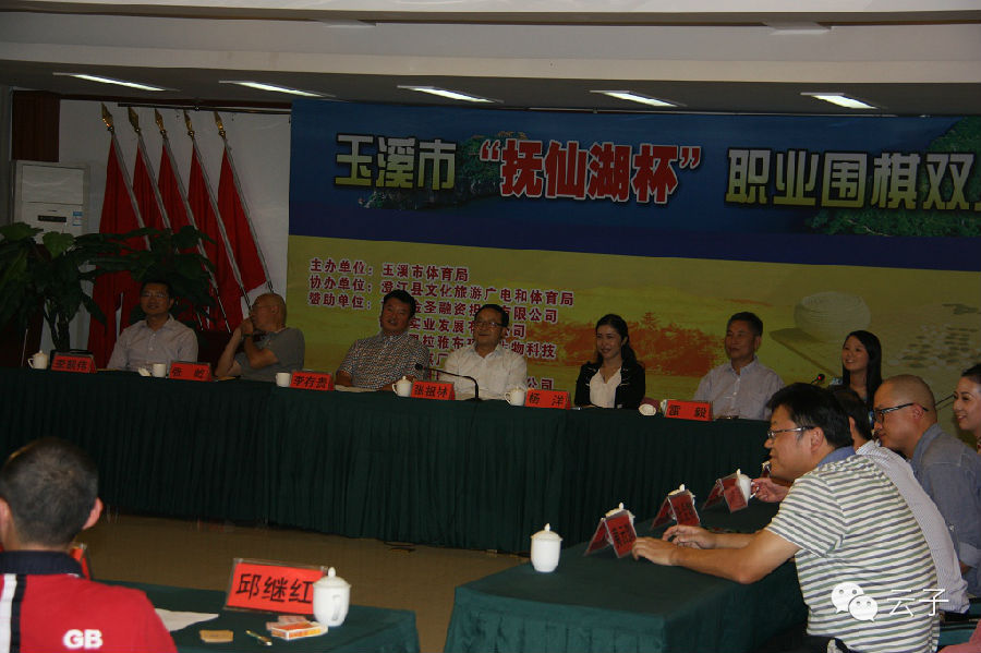 玉溪市“抚仙湖杯”职业围棋双人赛于2014年8月15日在美丽的抚仙湖之滨隆重举行,本次比赛是由一位业余棋手与一位专业棋手两两配对进行的单循环积分赛,参赛的职业棋手有:云南本土棋手丁伟九段、陈明川七段,以及著名棋手罗洗河九段、付冲六段、王垚六段,值得一提的是本次比赛还邀请了五位美女棋手的参与分别是梁雅娣二段、张瑞二段、杨梓二段,陈盈初段、毛昱衡初段,比赛共进行六轮,最后以积分高低决定比赛名次。