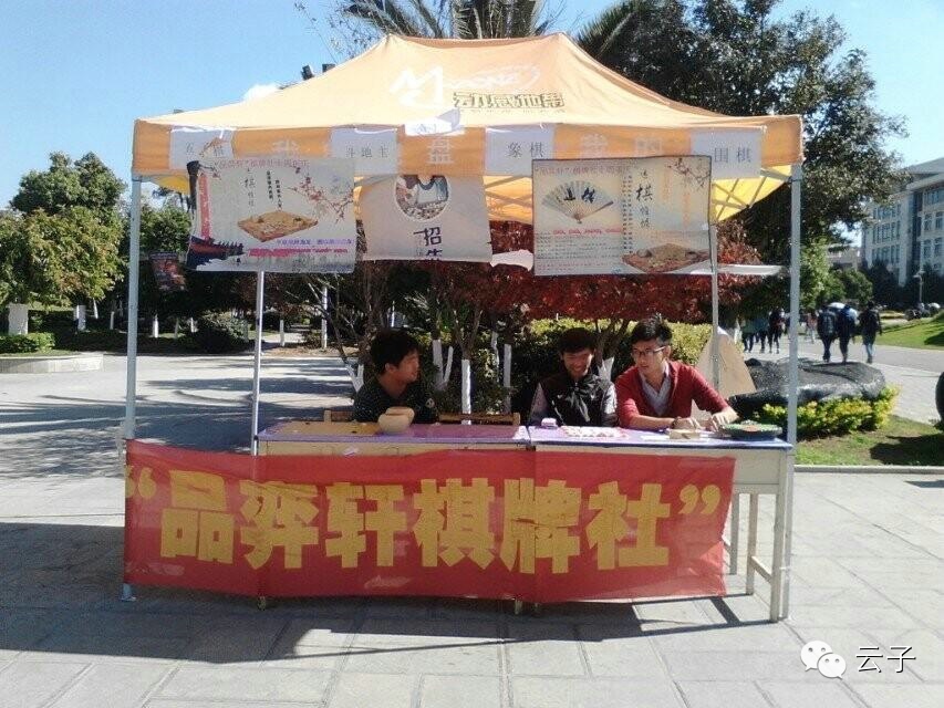 在2014年11月29日,昆明学院“品弈轩”棋牌社在云南围棋厂和云南云子文化传播公司的赞助与合作下,在昆明学院听心湖广场成功举办了第一届“云子杯”昆明学院围棋新手交流赛,本次比赛参赛选手共50人,前来交流和观赛的同学达两百余人。 本次比赛于2014年11月25日——11月28日在昆明学院聂耳广场及北苑食堂门口进行报名。
