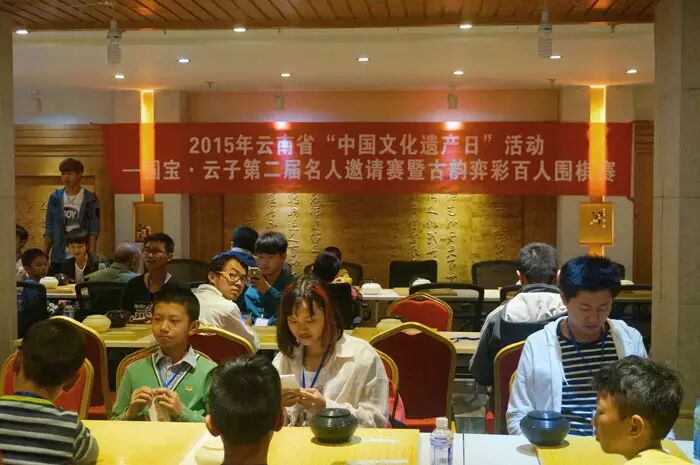 2015年6月13日是中国第十个“文化遗产日”,云南省文化厅、云南省文物局、云南省非遗中心、云南省博物馆等单位在昆明市官渡区官渡古镇举办“昆明官渡第五届全国非物质文化遗产联展暨全国百县手工技艺展示系列活动”,联展邀请了全国100个县的国家级、省级非物质文化遗产手工技艺代表性项目100项参展,传承人现场展示制作技艺,以充分展示全国非物质文化遗产精湛的手工技艺风采,让民众充分感受民族民间传统技艺绝活的魅力,其中,由云南云子文化传播有限公司承办、云南围棋厂协办的“国宝云子 · 第二届名人邀请赛暨古韵弈彩百人围棋赛”在云子棋院举行。